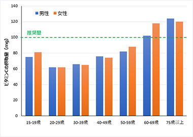 厚生労働省「2019年 国民健康・栄養調査」によると、 40代までの人は、食事から補っているビタミンCの量が推奨量を下回っているとされています。